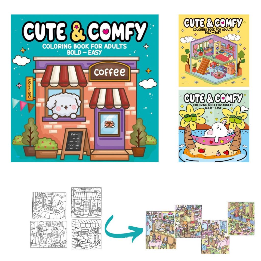 Coleção Cute & Comfy Coloring Book for Adults Especial - Kit com até 3 Livros de Colorir