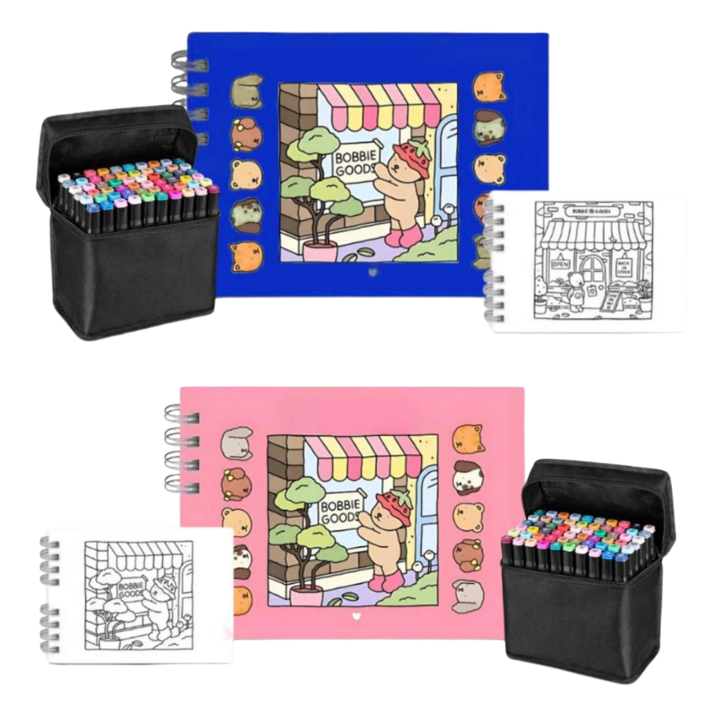 Kit Livro De Colorir Bobbie Goods Cute & Comfy + Conjunto Canetas Marcador 24/36/48/80 Cores
