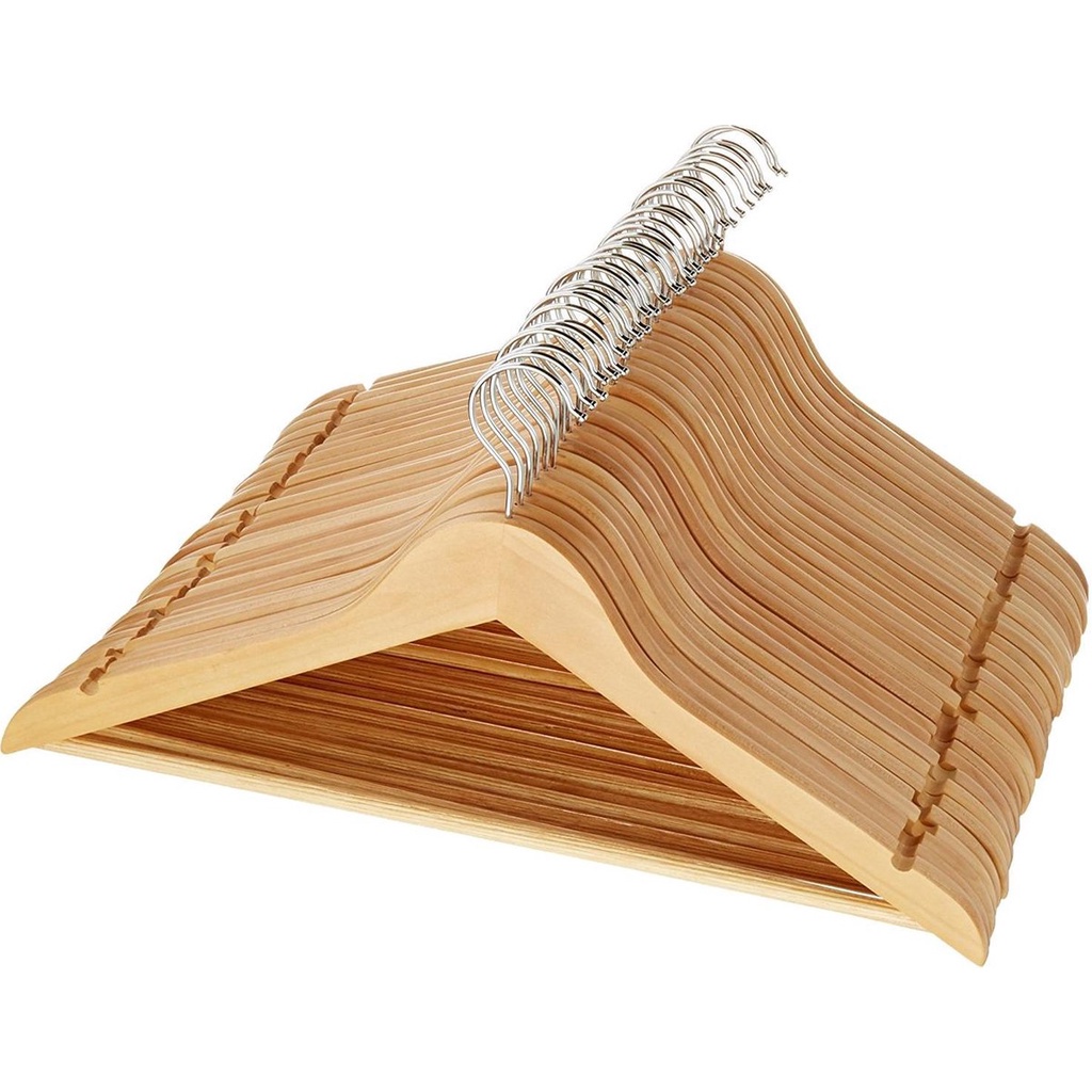 Kit Cabide de Madeira Marfim com Verniz 3, 6 E 12 Unidades Adulto Não Rasga a Roupa