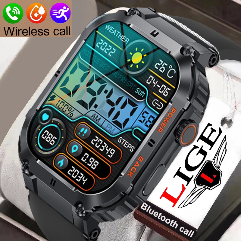 LIGE Outdoor 100 + Relógio Esportivo Smartwatch Homens Para Android IOS Ip68 Relógios À Prova D'água Freqüência Cardíaca BT De 1,96'Polegada Chamada Original