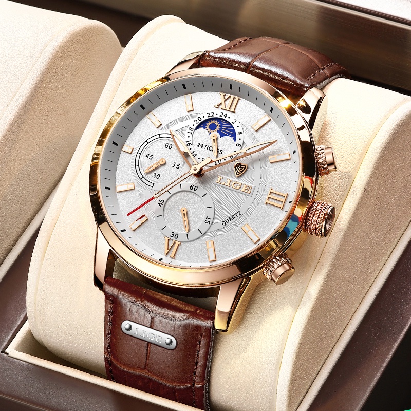 LIGE relógio de pulso para homens moda couro original confortável de usar chrongraph multifuncional impermeável relogio masculino