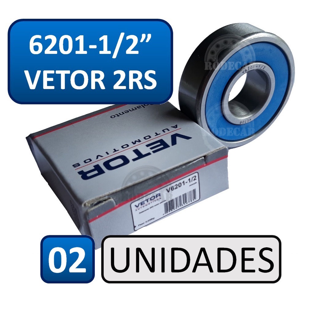 Kit com 02 rolamentos 6201-1/2" VETOR 2RS - 12,7x32x10(mm)