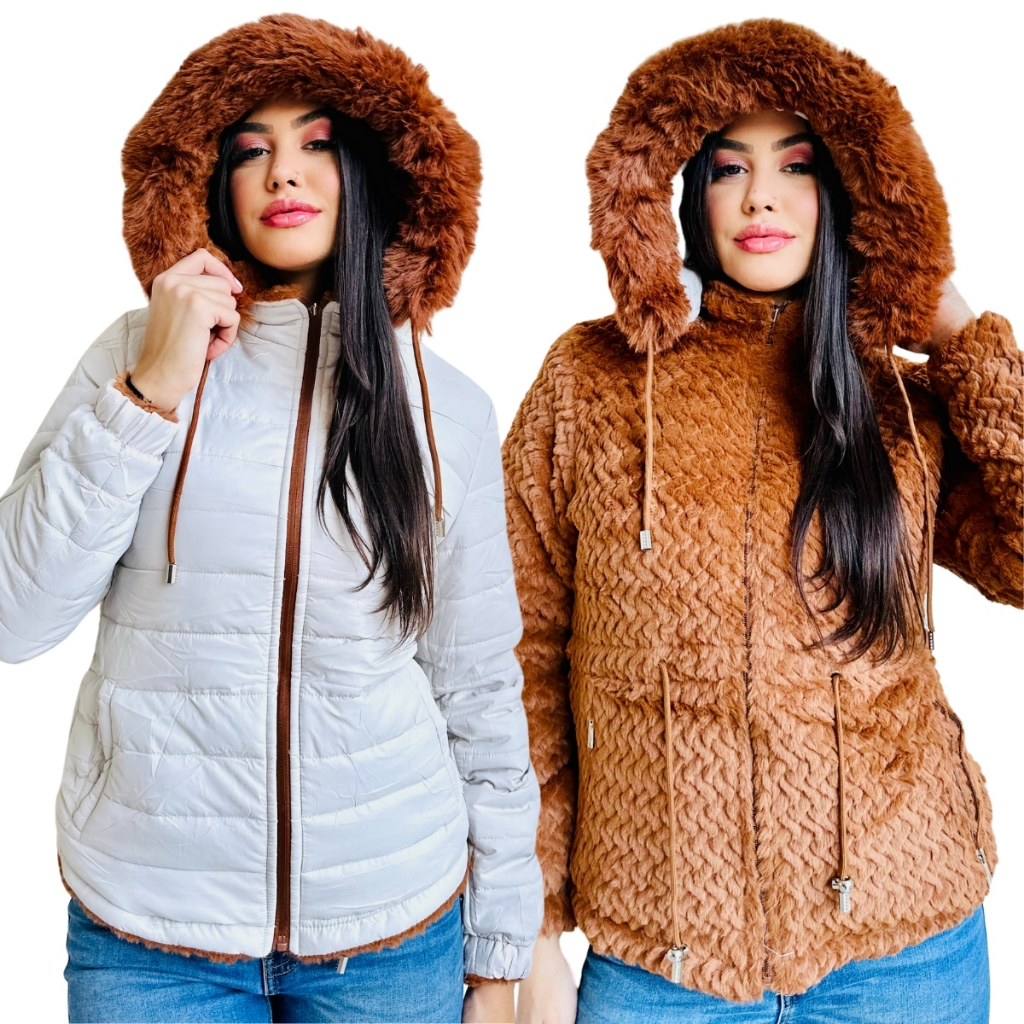 Blusa de frio feminina parka dupla face peluciada nylon Jaqueta feminina plus size