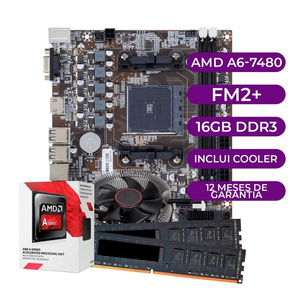 kit Upgrade AMD A6-7480 + Cooler + Placa Mae FM2 + 16GB DDR3