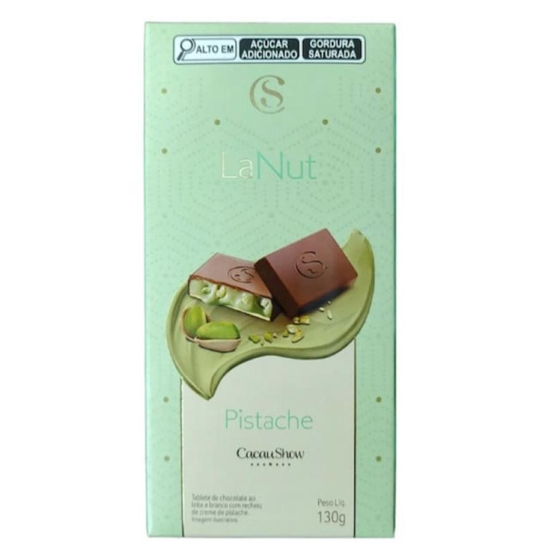 Tablete Barra de Pistache Lanut 130g Chocolate Cacau Show com Creme de Pistache e Pedaços