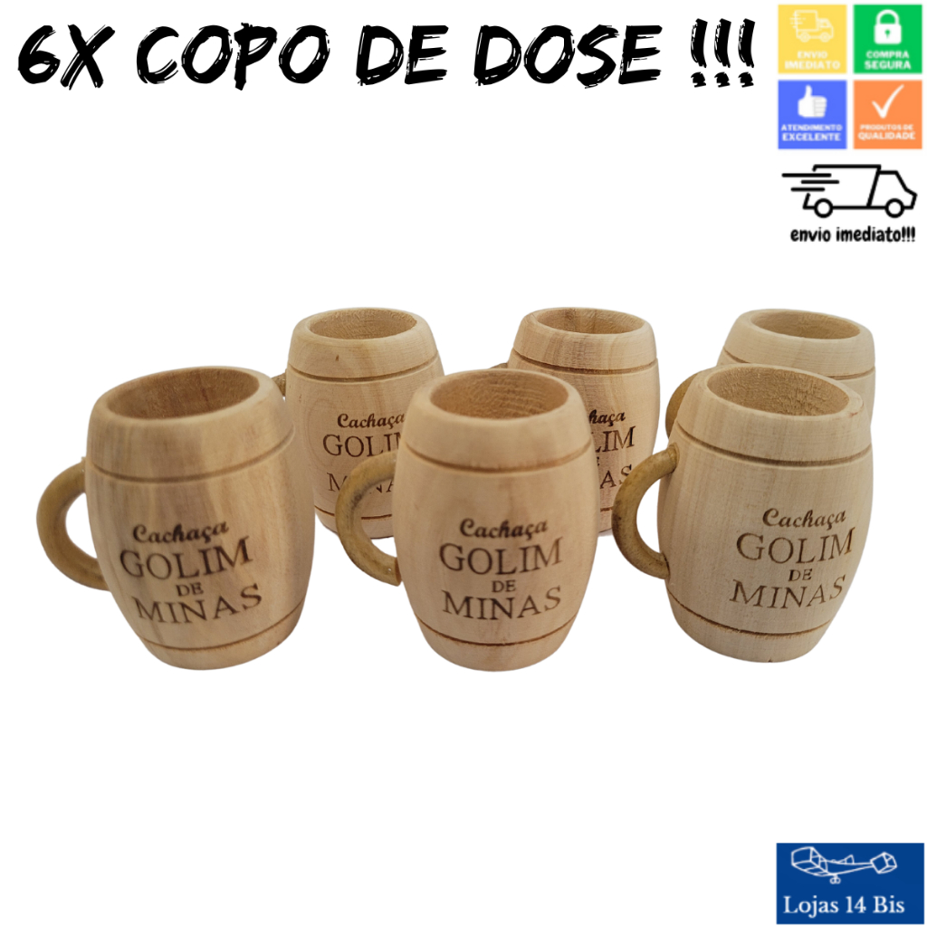 6 Copos Dose de Madeira Com Alça Detalhe Artesanal Enfeite Cachaça Golim de Minas 50ml