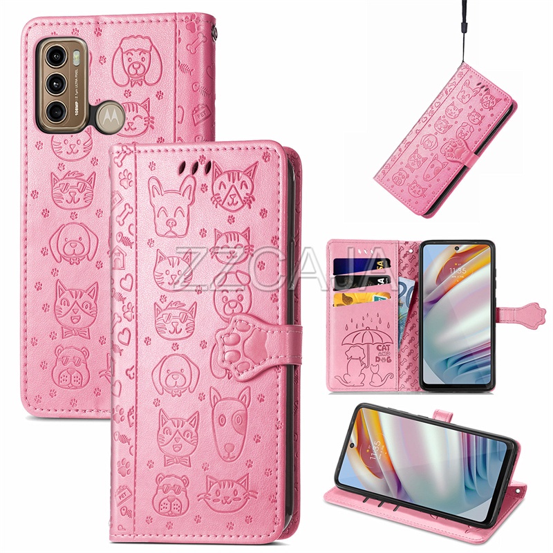 Capa Para Moto G9 Play G8 Power Lite G10 G20 G30 G41 G60 G60S G71 G200 5G G23 G53 G73 PU Carteira De Couro Gatos Bonitos