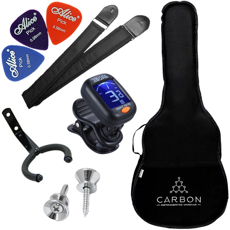 Kit Acessórios Para Violão Clássico C/ Capa Palhetas Afinador Correia Suporte Parede VX04