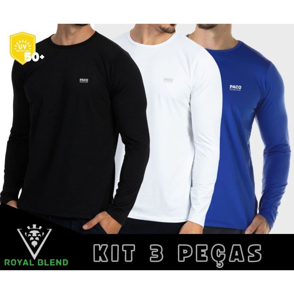 kit 3 blusa de frio masculina Modal camiseta manga longa Dia a Dia Academia Regulação Térmica UV50+