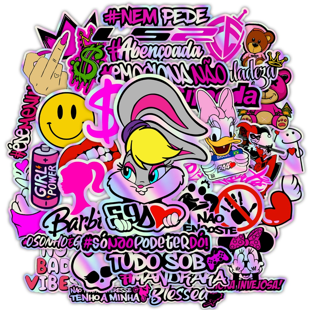 Super Kit 35 Adesivos Holografico De Menina Para Moto Carro Capacete Osascorte Mandraka Abençoada 244 59D Feminino