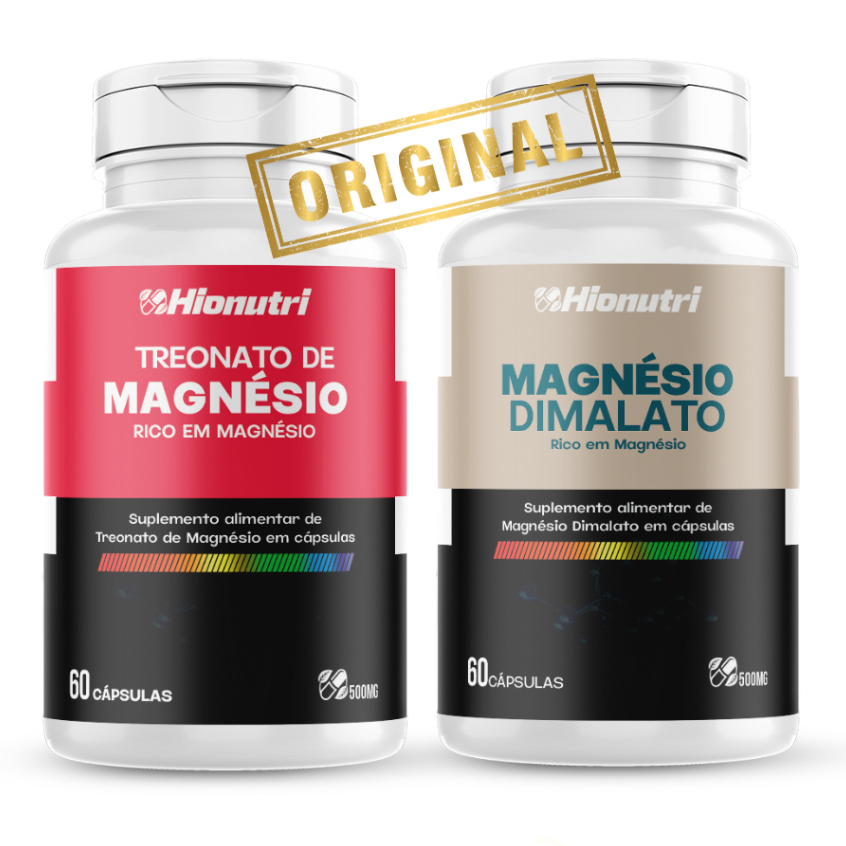 Mix Poderoso de Magnésio - 2 TIPOS DE MAGNÉSIO Treonato + Bisglicinato Malato 60 Cápsulas 500mg