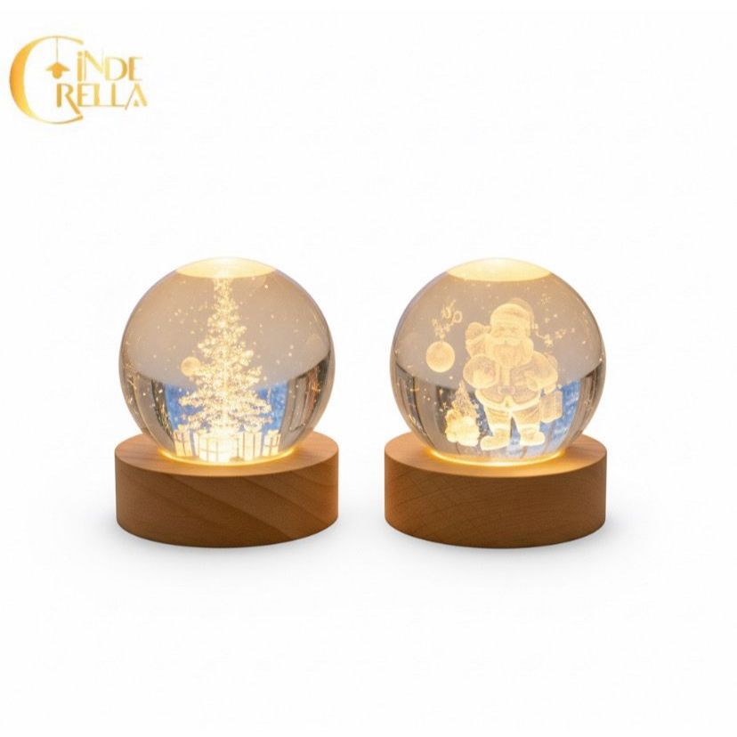Luminária de Mesa Efeito 3D de Natal Decorativo com Luz LED USB Abajur Globo cristal