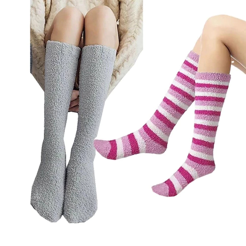 kit 12 Pares Meias Longa Felpuda de Lã Grossa Unissex Para Frio Quente De Outono E Inverno Térmica