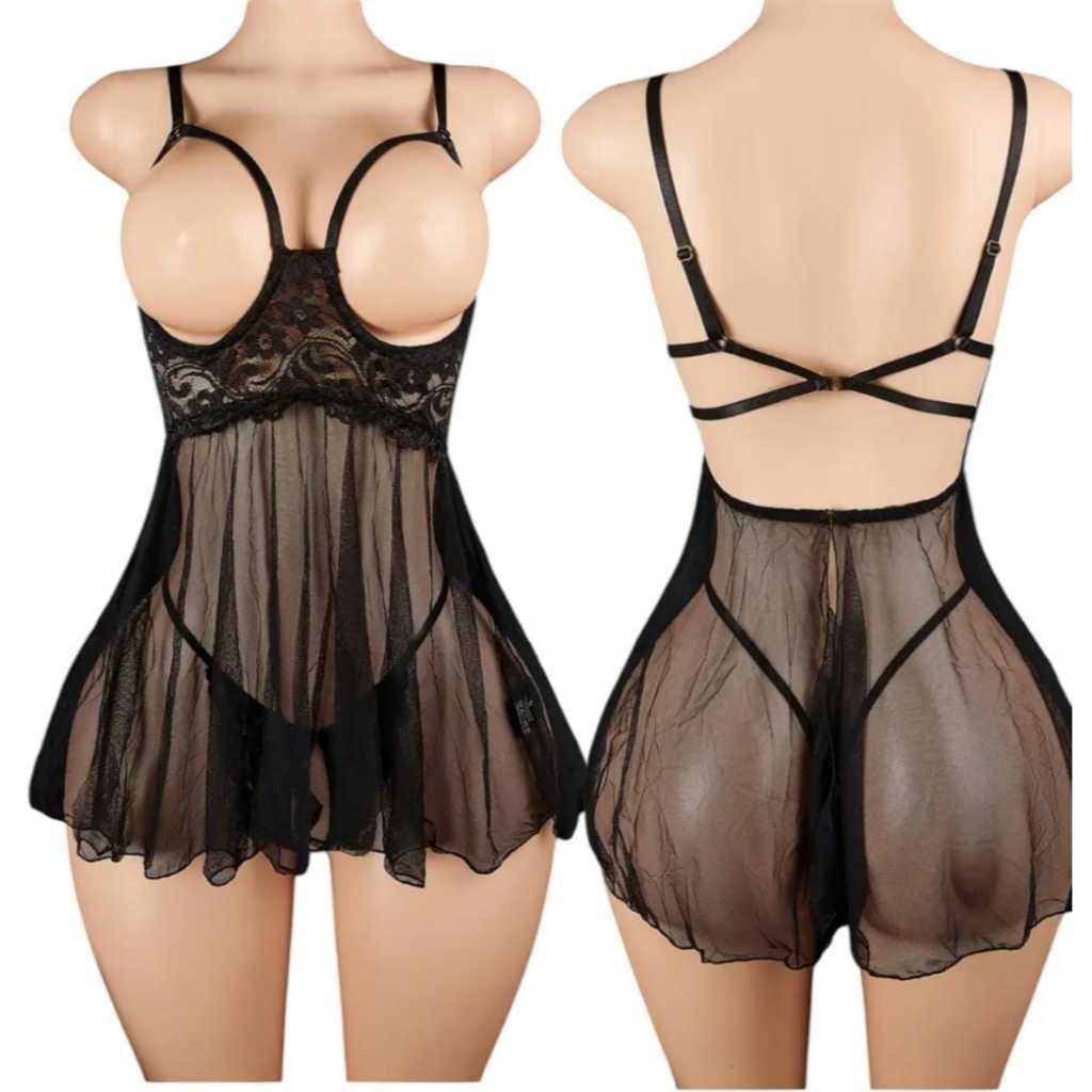 Camisola sensual com transparência e abertura nos seios provocante ousada luxo detalhes renda 1821
