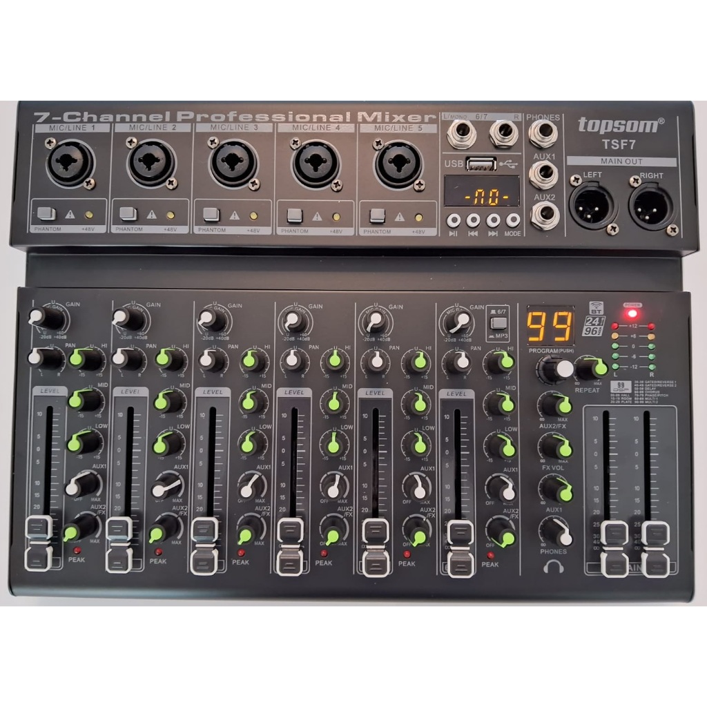 MESA DE SOM 7 CANAIS REVERB BLUETOOTH TOPSOM TSF-7
