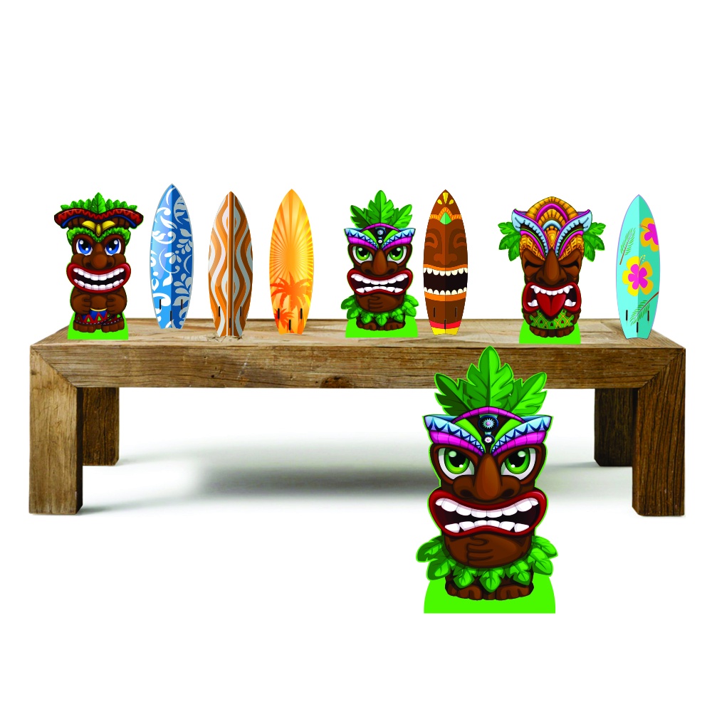 Havaí Tiki totem kit 8 de mesa + 1 de chão kit enfeites de festa temática