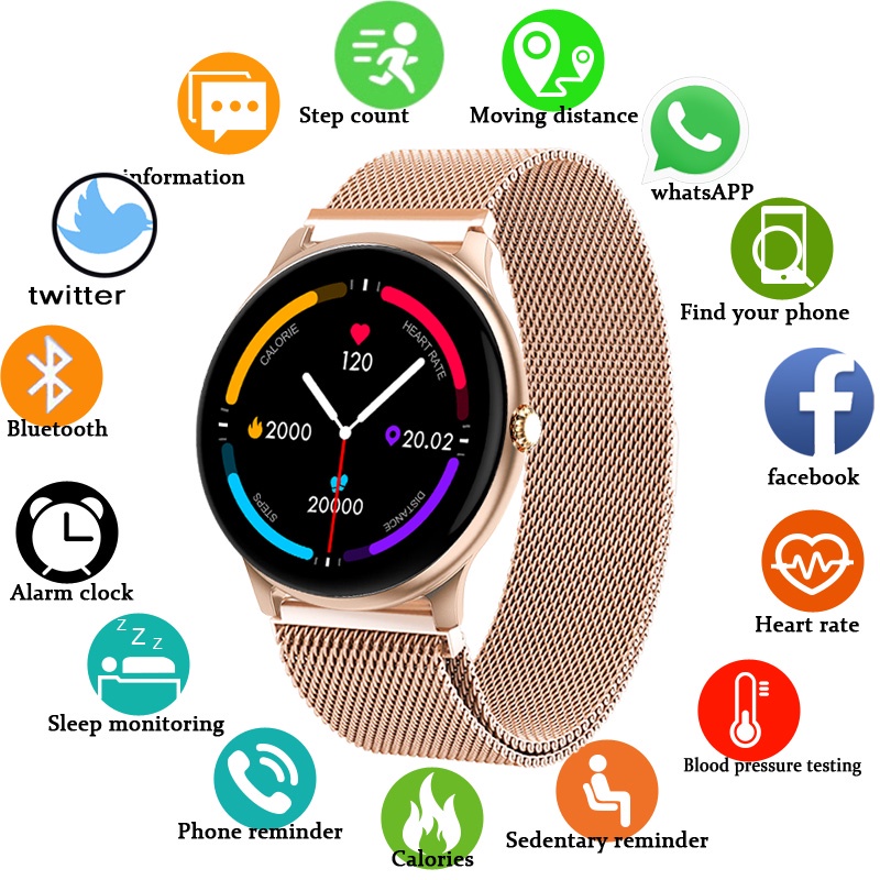 Para Android Xiaomi 2022 Novo Bluetooth Chamada Moda Relógio Inteligente Damas Frequência Cardíaca Pressão Arterial Multifuncional Esportivo Masculino Mulher Impermeável Smartwatch Feminino