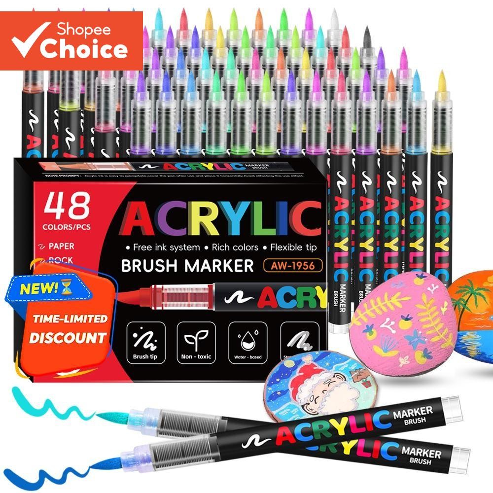 Kit Marcadores de acrílico 12/24/36/48 cores de tinta com CANETA BRANCA à prova d'água