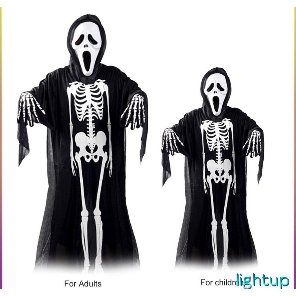 Fantasia Adulto Pânico Caveira Manto Esqueleto Halloween para adultos e infantil