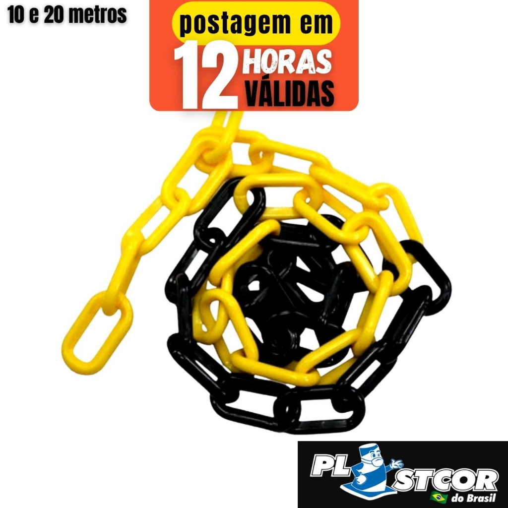 Kit Corrente Plástica Zebrada Sinalização Isolamento Calha Elo Pequeno 10 Metros