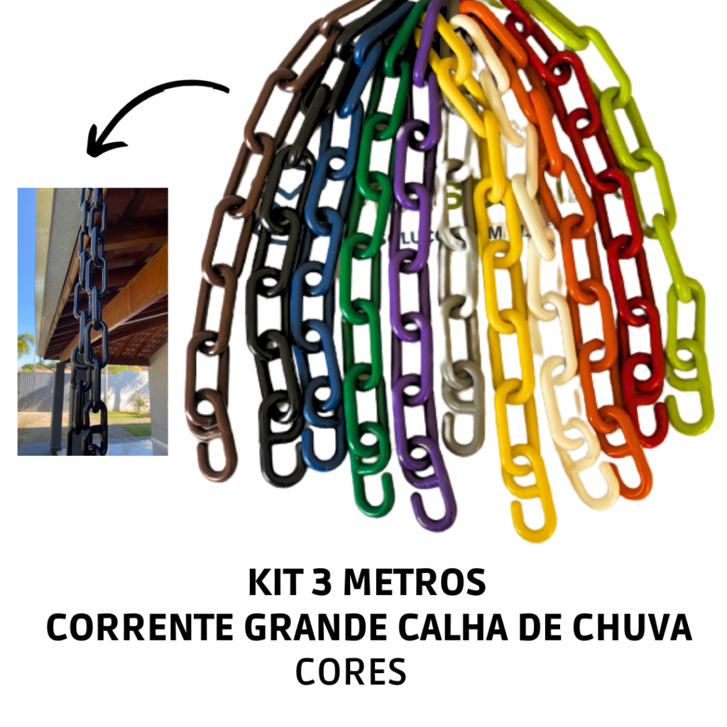 KIT 3 metros - Corrente Plástica para calha de chuva - Cores - Promoção - Elo G 3x6x9cm