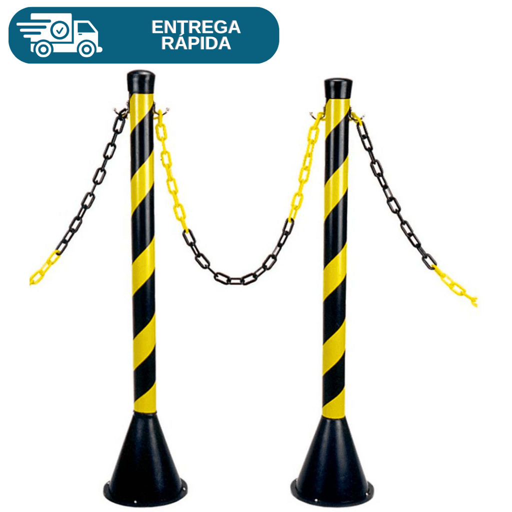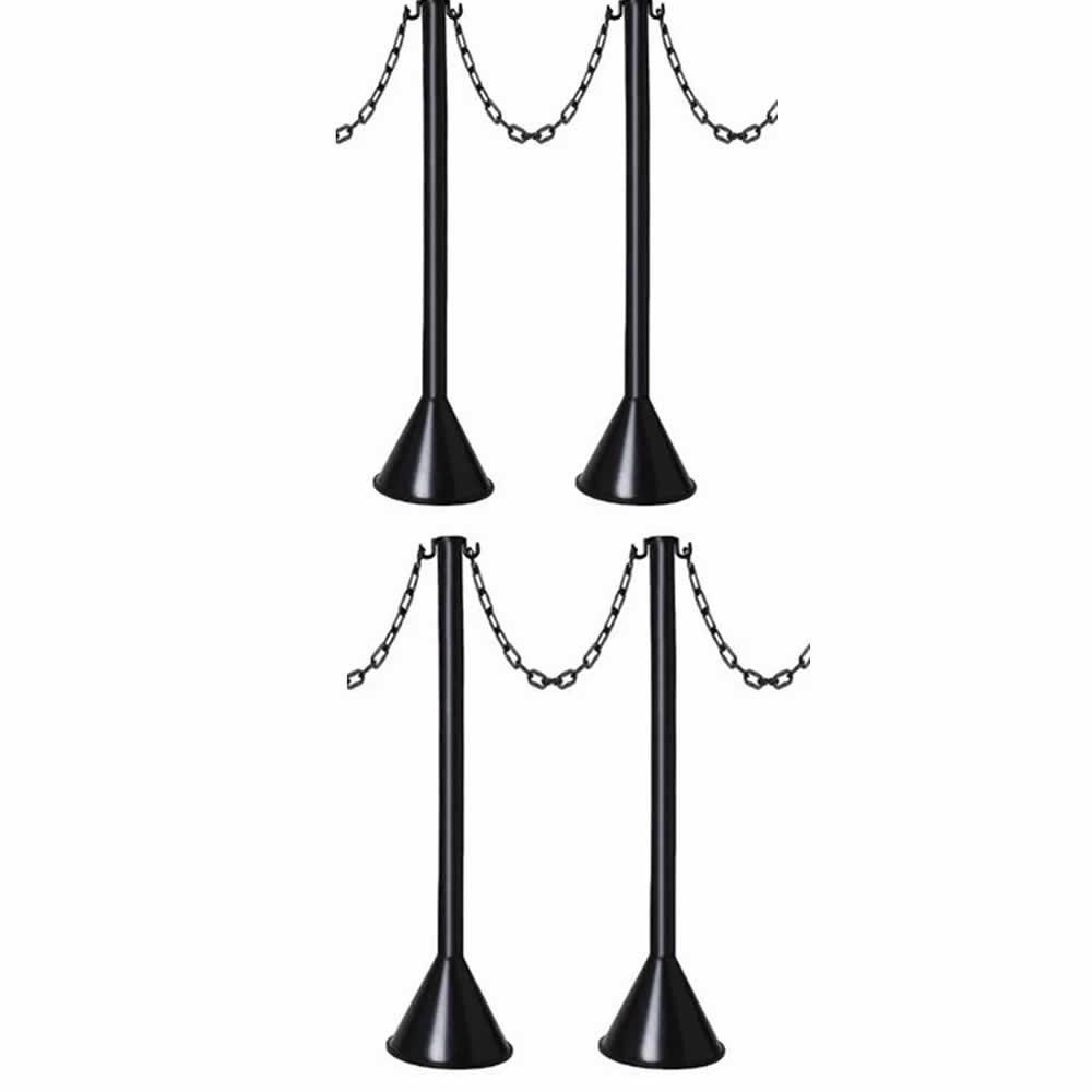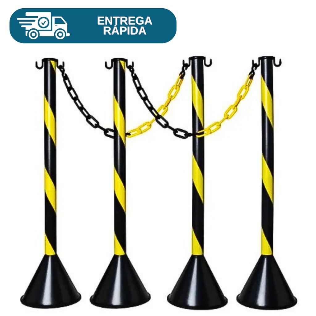 Kit 4 Pedestal Plástico Preto Para Corrente Sinalização 95cm + 10 Metros de Corrente