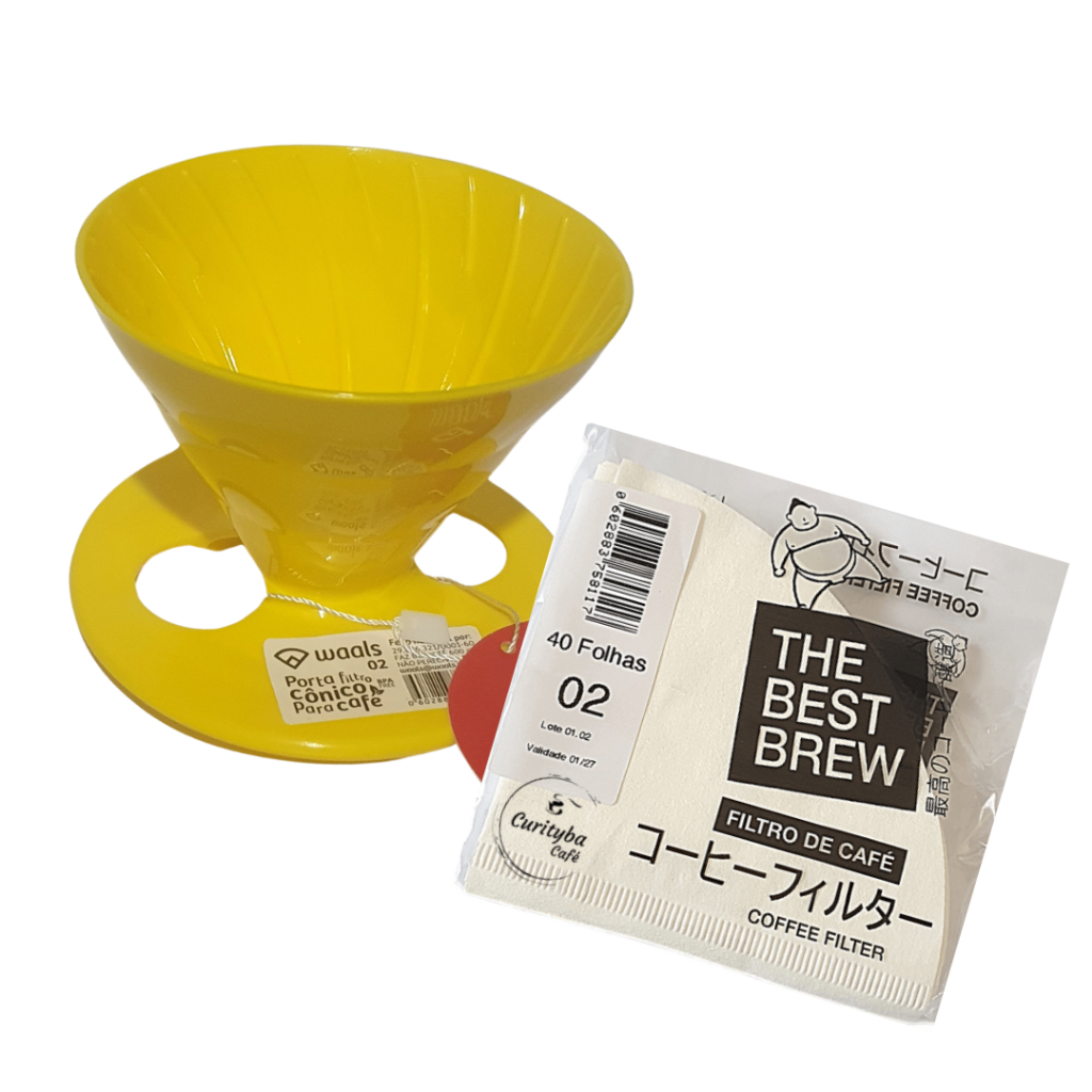 Kit Porta Filtro Waals tipo V60 (várias cores) + Filtro 02 40un