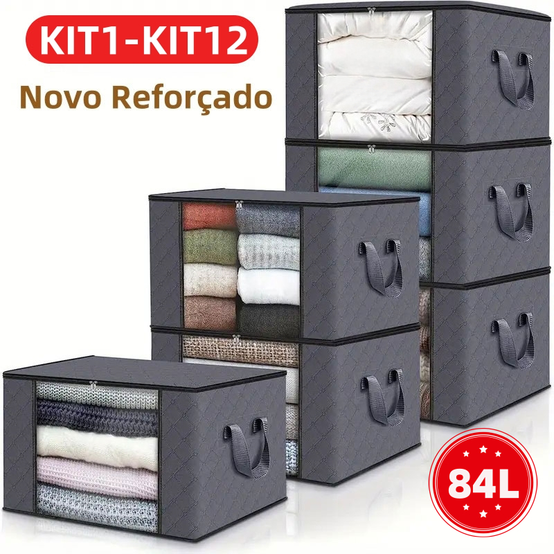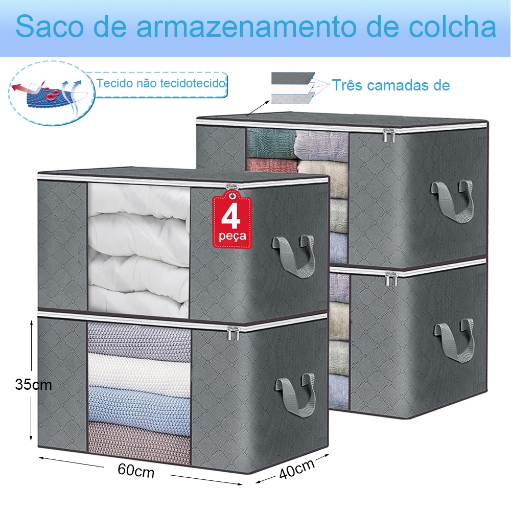 KIT Caixa Saco Organizador Grande Cobertor Casaco Guarda Roupa Ecológico Anti-Poeira Umidade Insetos Multiuso