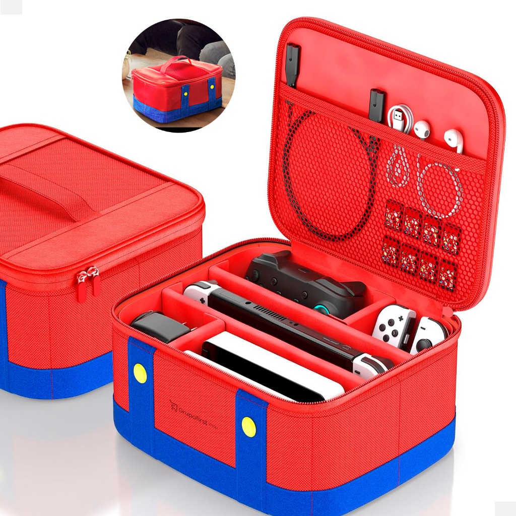 Case Capa Bolsa Estojo Transporte Premium Nintendo Switch Vermelha Preta Azul Macacão Mario Switch V1 V2 e Switch Oled - Proteção Resistente