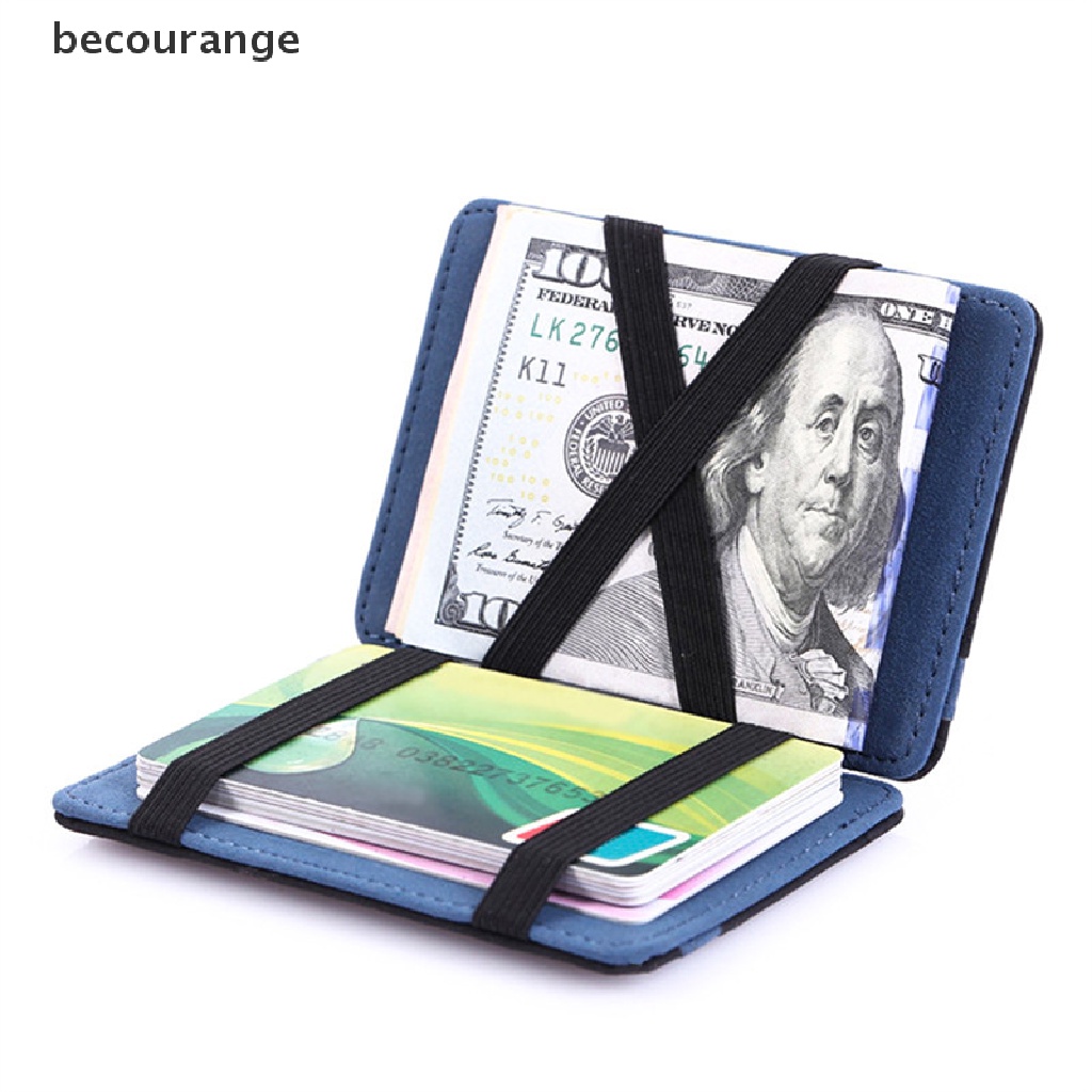 [becourange] Carteira Mágica De Couro Para Homens Clipes Elásticos Porta Dinheiro Pequeno Bolsa Slim [BR]
