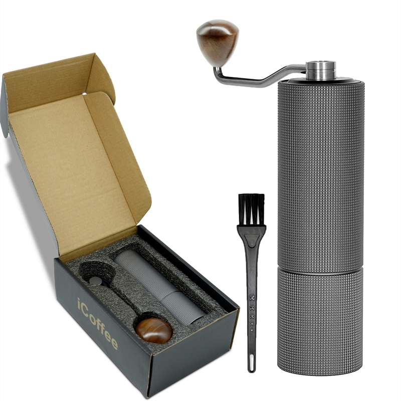 iCoffee M4 Moedor De Café Manual Profissional Corpo de Alumínio Aço Inoxidável Núcleo de Moagem 30g Com Caixa e Pincel