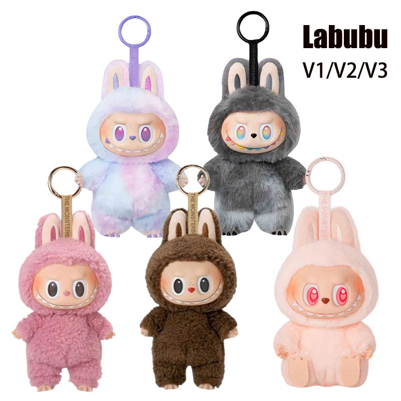 Pop Mart Chaveiro Labubu Doll V1 Os Monstros V2 Emocionante Macaron Boneca Vinil Rosto De Pelúcia Brinquedo