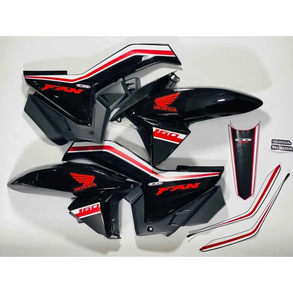 KIT ABAS + LATERAIS TITAN 160 PRETO E VERM. COM NOME FAN