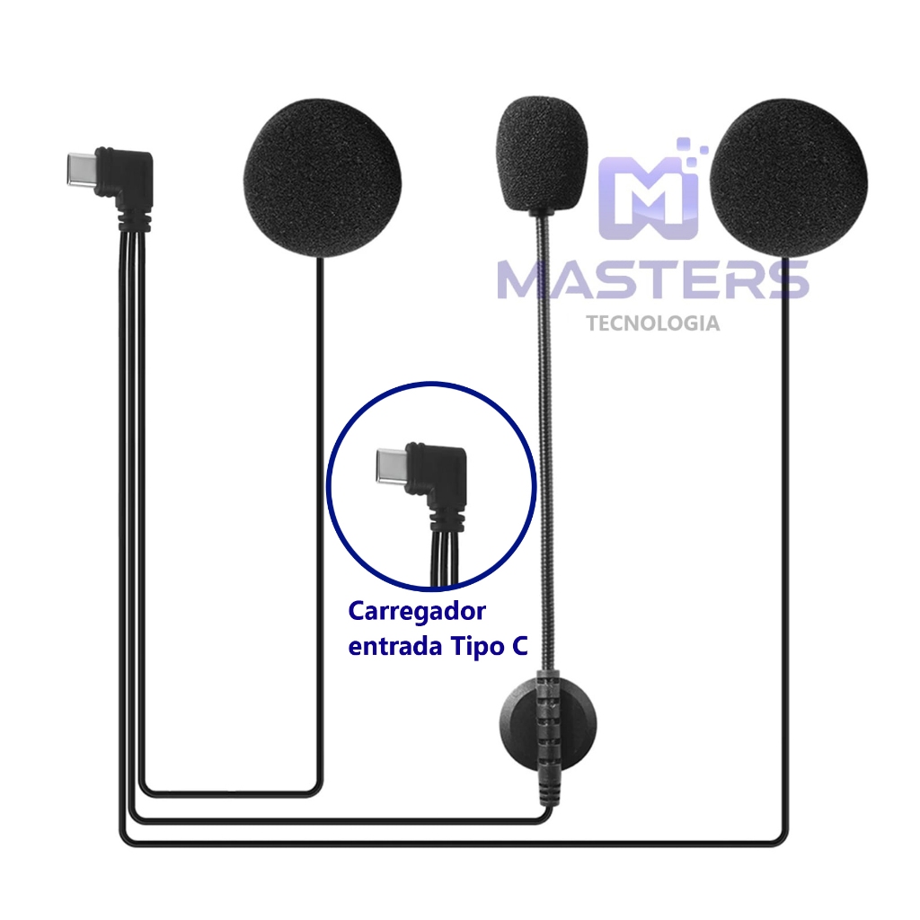 Microfone Fones de ouvido Tipo C para intercomunicador V4 Plus Ejeas Capacete Moto Viagem Motociclista