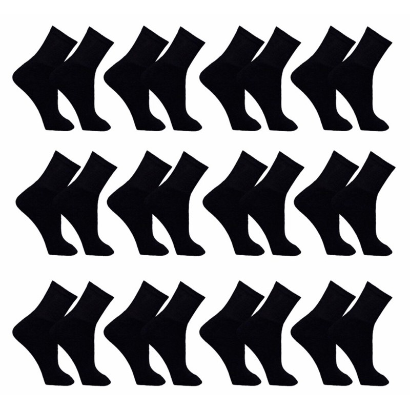 12 Pares De Meia Cano Longo Preta De Algodão - Unissex