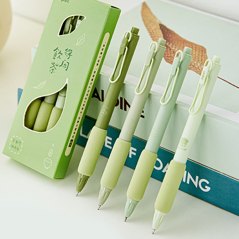 4 Pcs Caixa De 0,5mm Série Matcha Caneta Retráctil Estudante De Tinta Preta Portátil ST Nib Gel