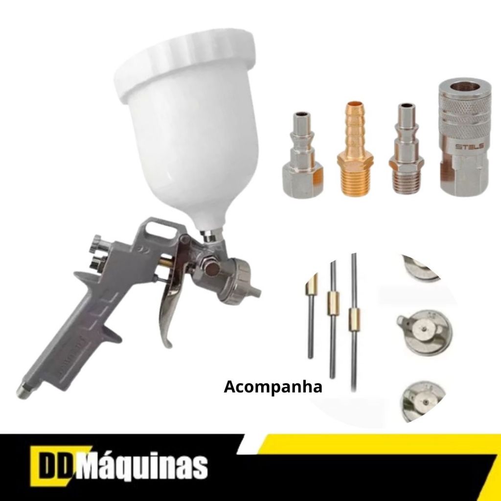 Kit Pistola de Pintura Gravidade 3 Bicos 600ml+Jogo de Conector com Engate 04 Peças- Titanium/Stels