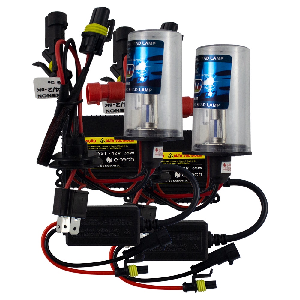 Kit Lampada Xenon H4-2 8000k 2550 Lúmens 12v 35w E-tech Farol Baixo Alto Halógeno