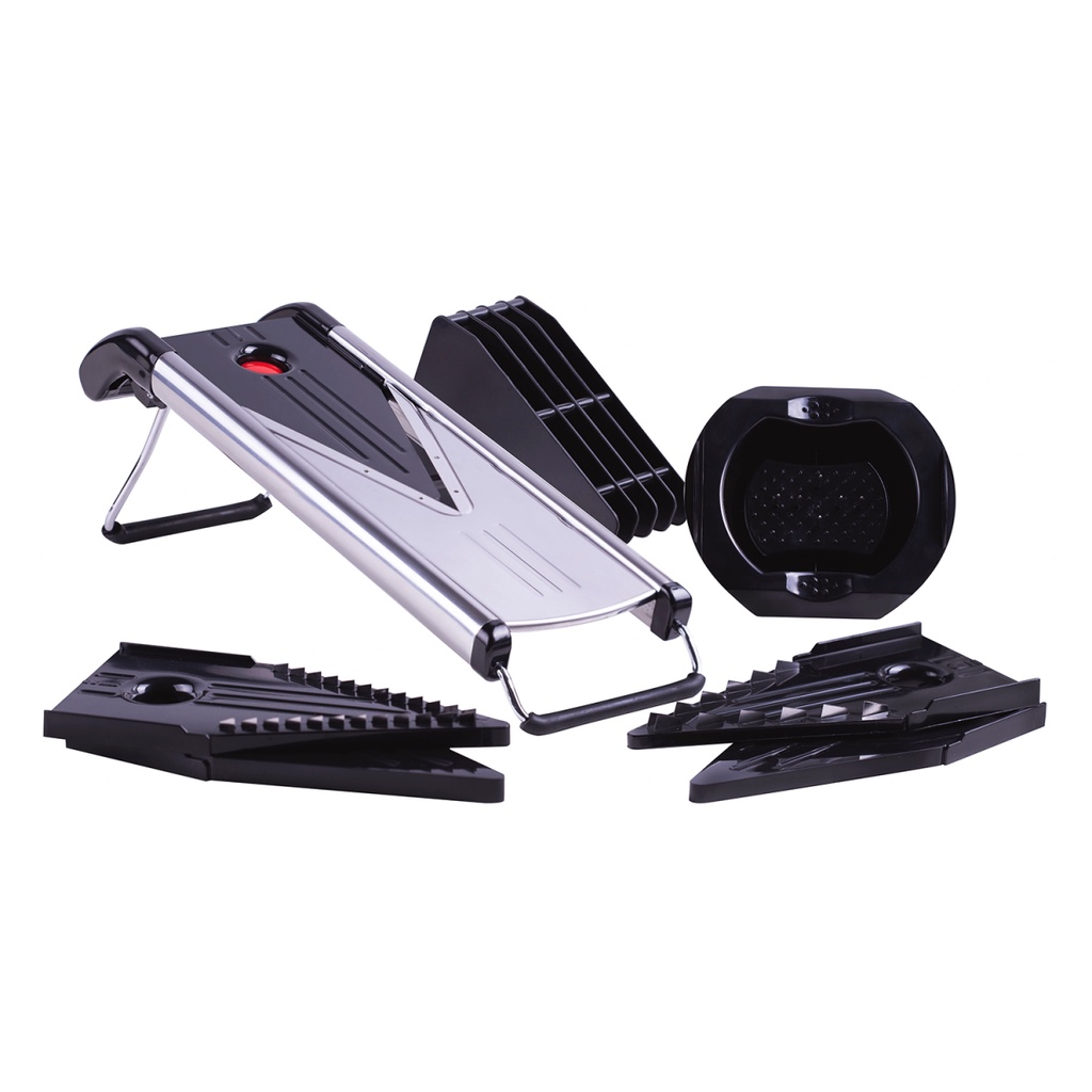 Mandolin Profissional Fatiador Picador Cortador Legumes Frutas Inox Com 5 Laminas E Multibox V5 em 1