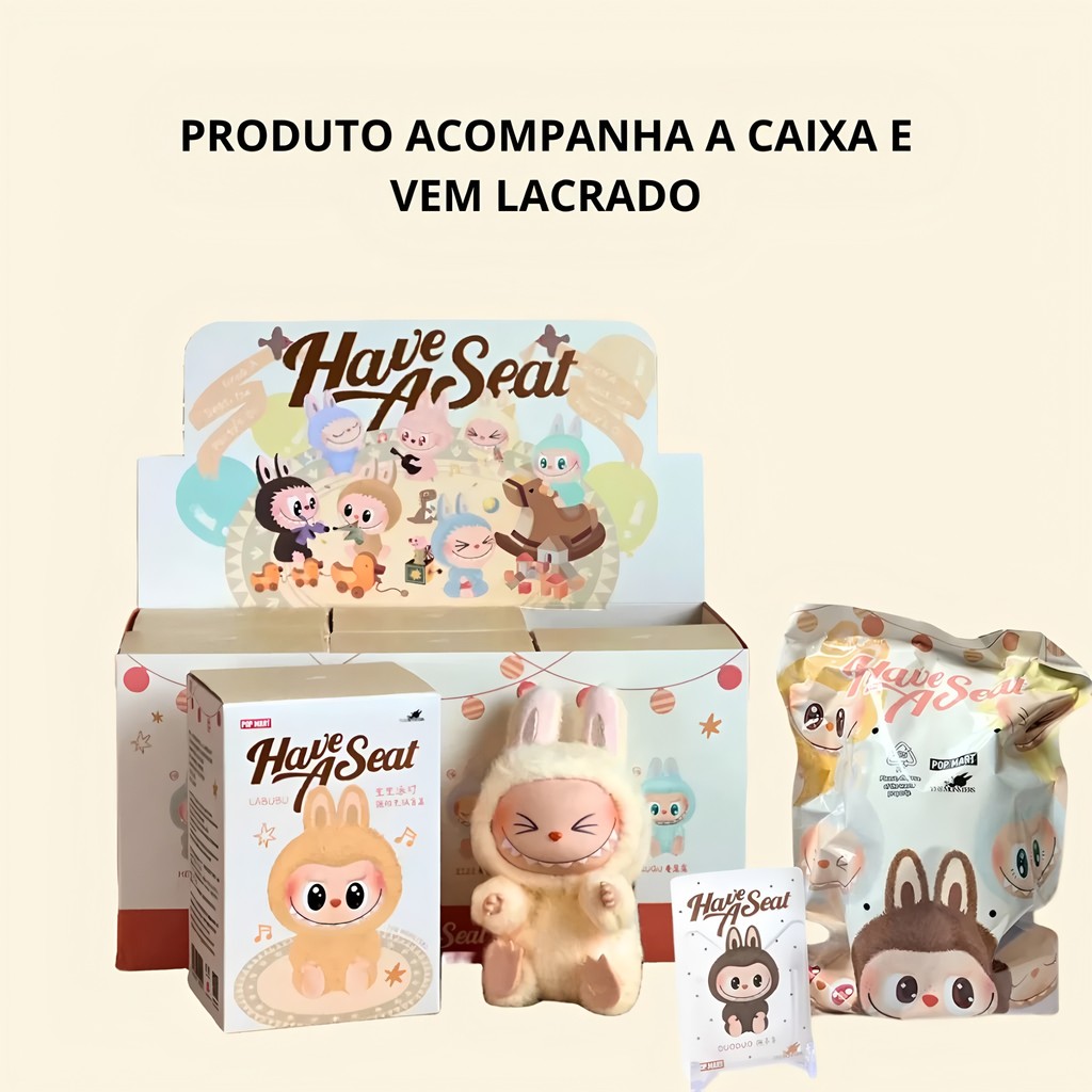 Chaveiro Lafufuu Boneco de Pelúcia Sentado com Caixa Surpresa Blind Box - 1ª/ 2ª /3ª Geração