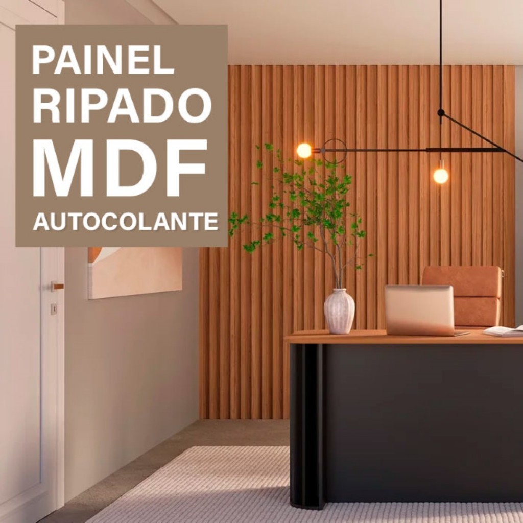 Kit 100 Placas Painel De Parede Ripado em MDF Revestimento Autocolante Completo