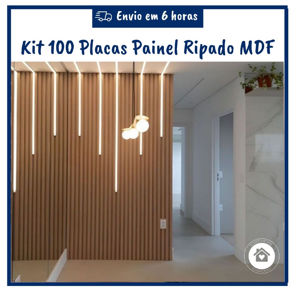 Kit 100 Placas Painel Ripado Revestimento de Parede MDF 45x11 Decorativo Moderno - Envio Imediato