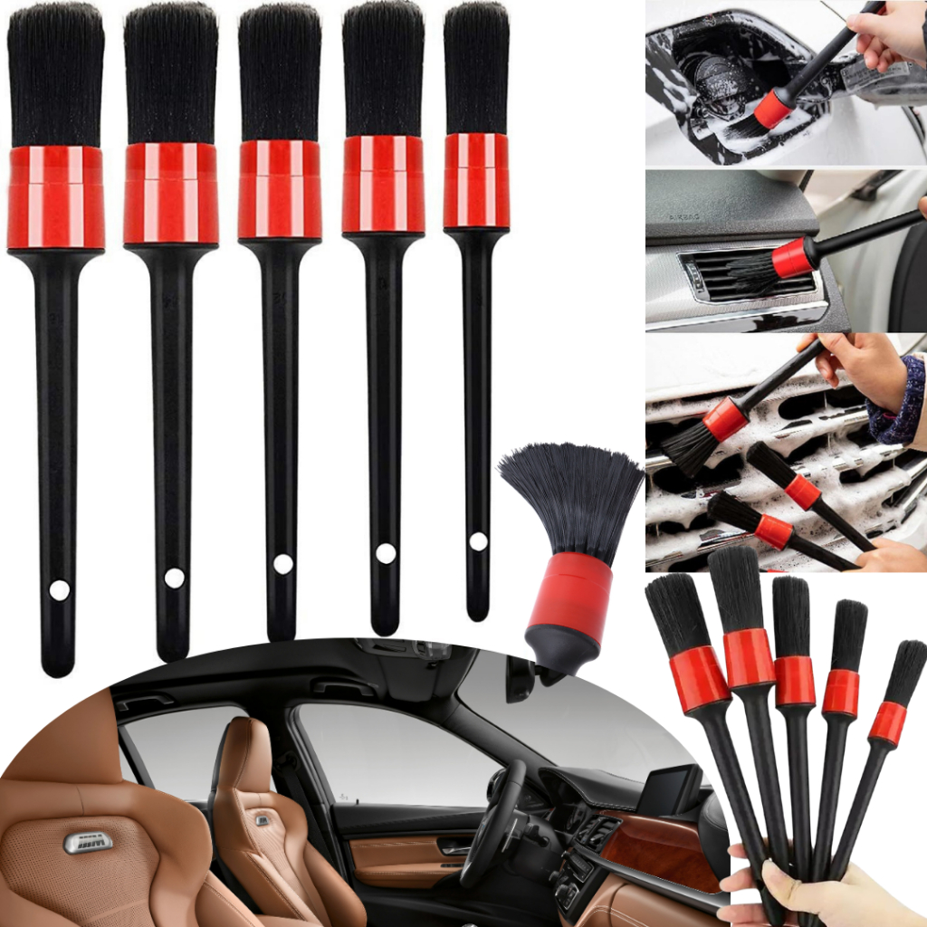 Kit 5 Peças Pincel De Detalhamento Automotivo Limpeza Automotiva De Carro Interno Externo Escova Multifuncional