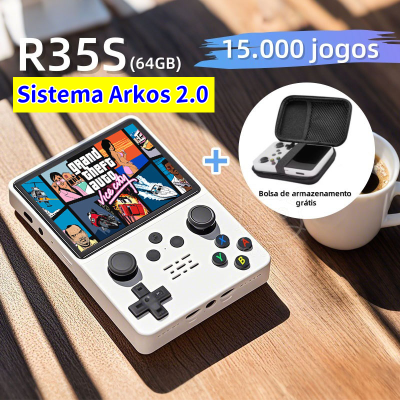 Console Portátil R35S Retro - Tela IPS 3,5", 64GB com 15000 Jogos, Linux - Ideal para Fãs de Clássicos