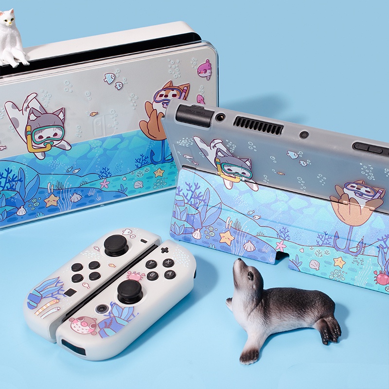 Capa Protetora Transparente Para O Nintendo Switch/OLED Summer Limited Sea Cat Dog Matte Hard Shell Joy-con