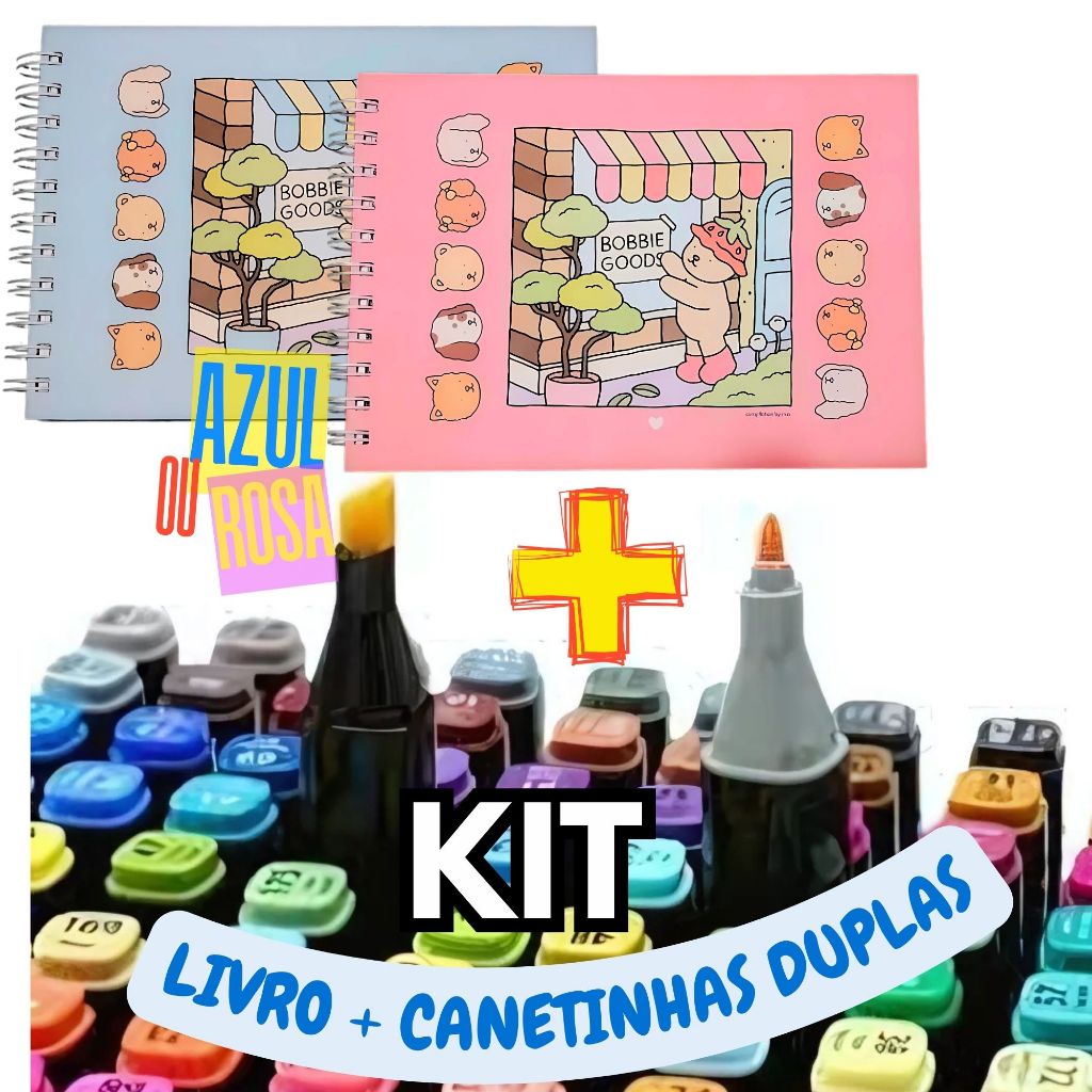 Kit Bobbie Goods: Livro de Colorir 50 Folhas com Capa Brilhante + 24 Canetas Dupla Ponta – Criatividade Pura