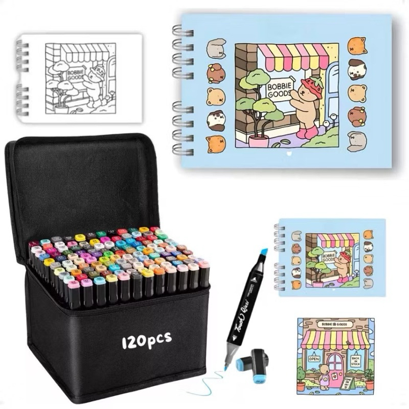 Kit Livro De Colorir Bobbie Goods Com Conjunto De Canetas Ponta Dupla 24/36/48/60/80 Cores Capa Dura 50 Páginas 180g A5