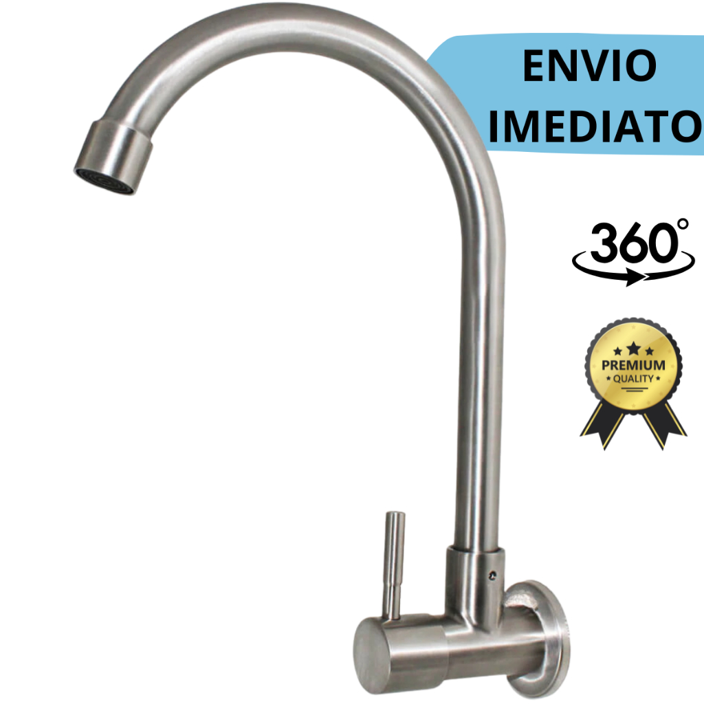 Torneira de cozinha pia parede gourmet bica giratoria 360° luxo aço inox escovado
