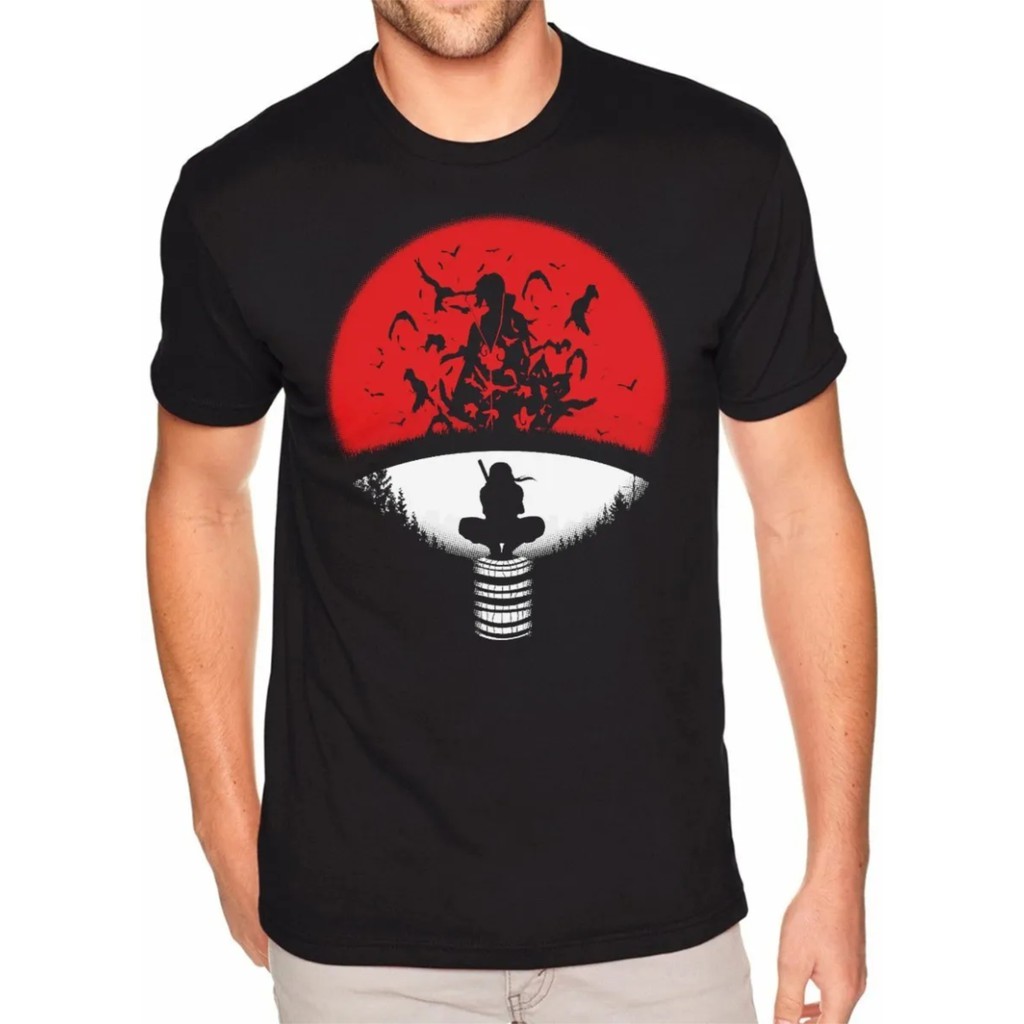 Camiseta Itachi Sobre A Lua Akatsuki Uchiha Clã Naruto Sasuke Anime Mangá Sharigan Camisa Blusa Unissex 100% Algodão