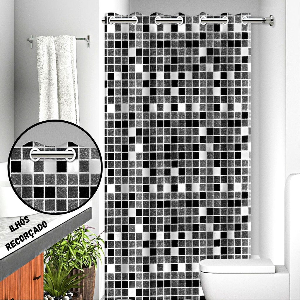 Cortina de Box para Banheiro Pastilha Preta Fumê Antimofo Resistente Impermeável Ilhós p/ varão Inteira PVC 2,00 X 1,40M